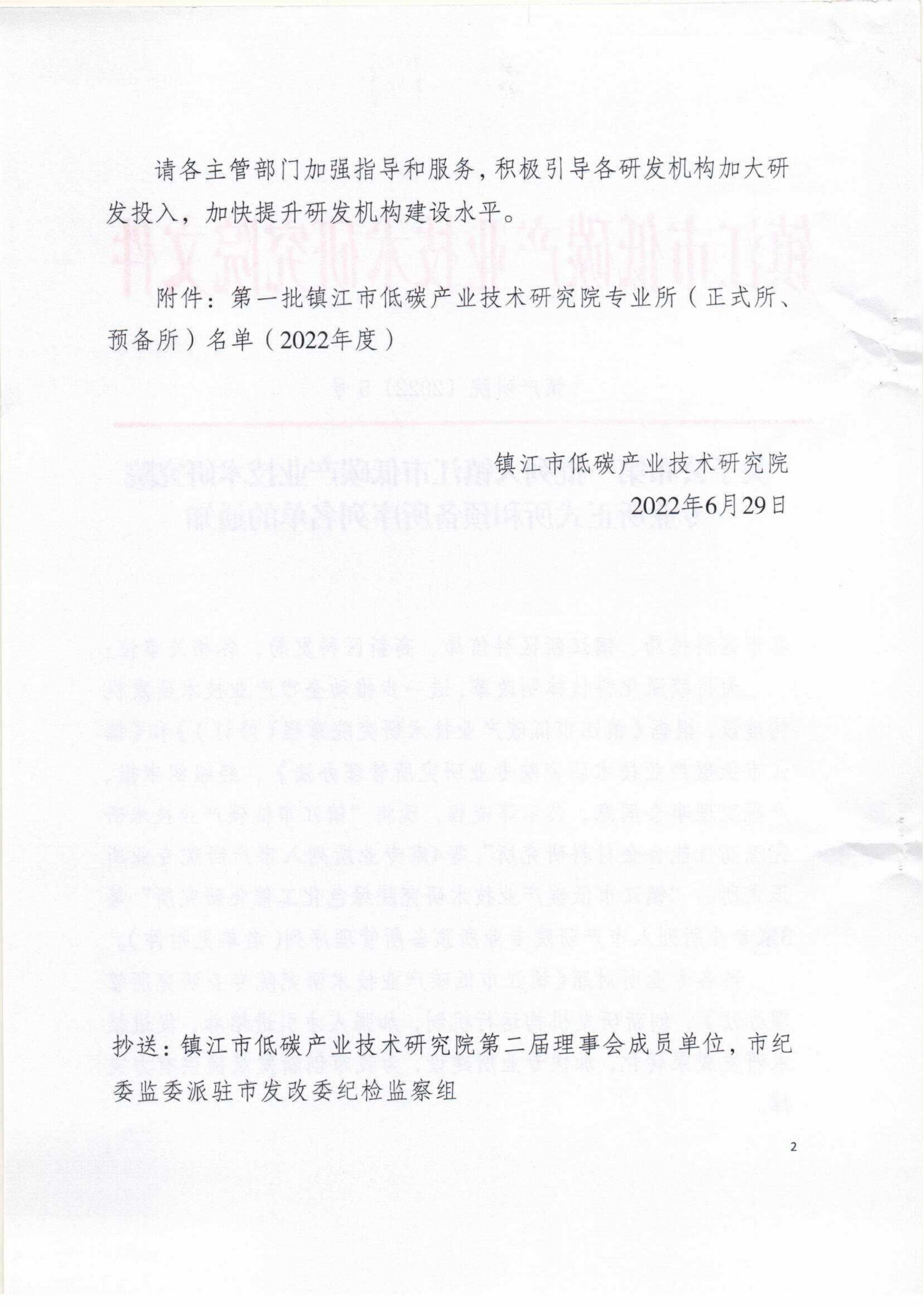 2022年6月29日,我院成功备案“镇江市低碳研究院第一批专业所”-镇江市低碳研究院智能制造技术研究所。